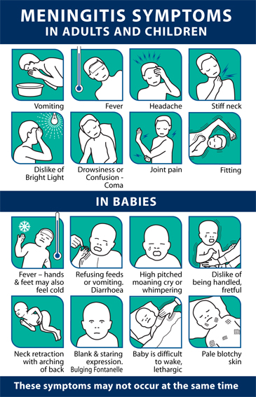 Anyone experiencing symptoms including vomiting, fever, headache, stiff neck, dislike of bright light, drowsiness, joint pain or seizures should see their doctor.